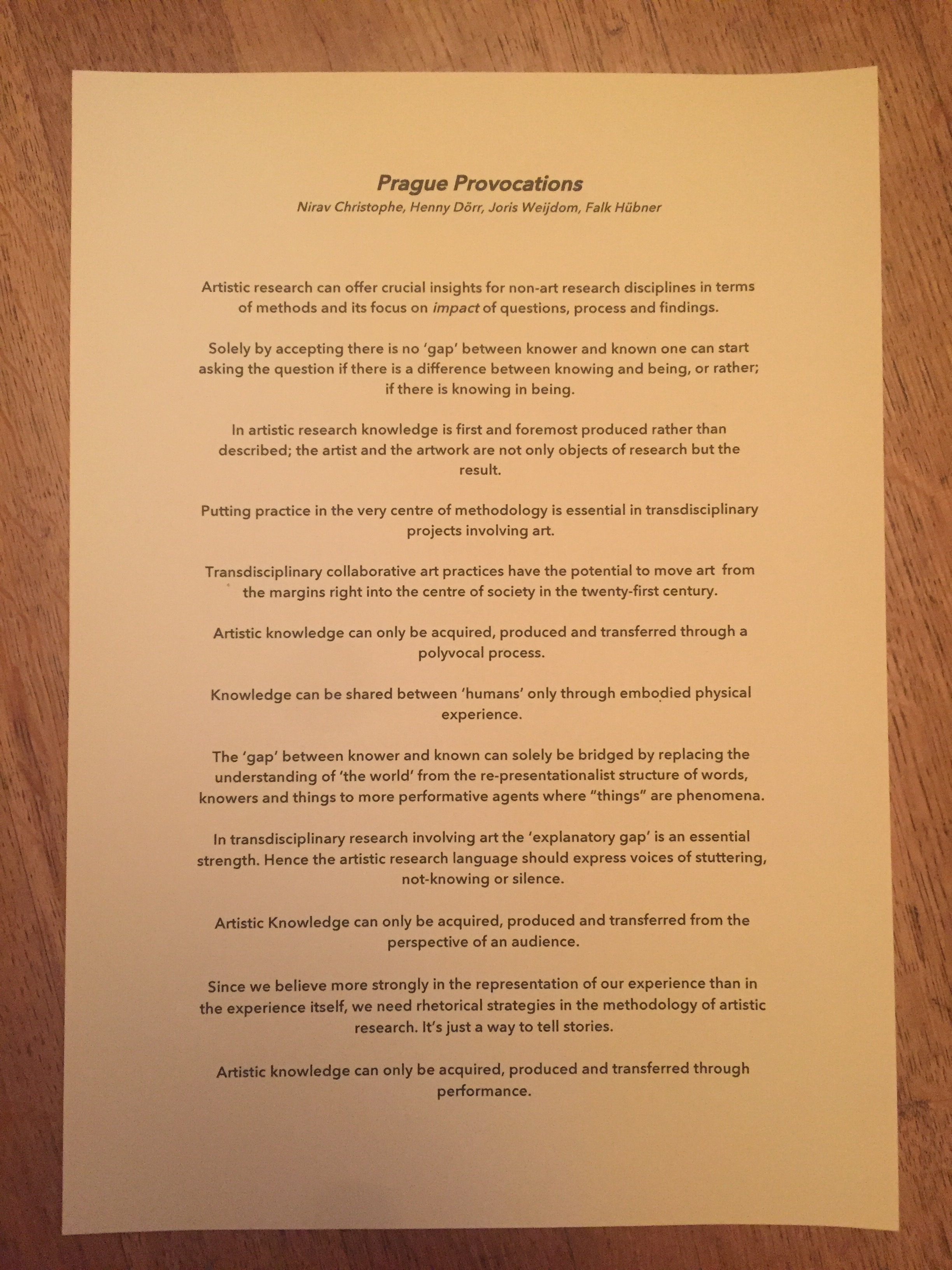 Next to the lecture as such, the team distributed a number of statements under the title “Prague Provocations” (see image).