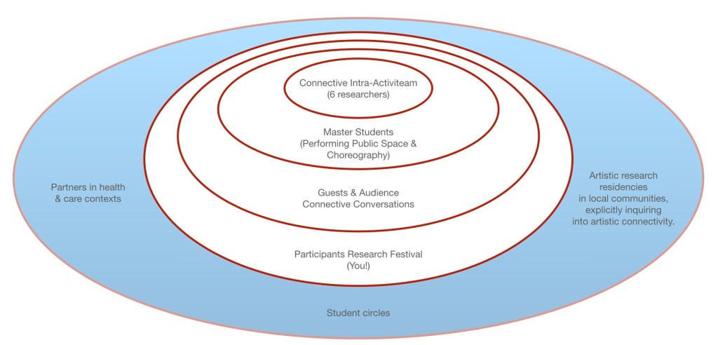 The professorship’s main next step is to generate artistic research work from the questions we have, in order to explore the notion of Artistic Connective Practices through artistic (research) practice. This will happen in the form of artistic research residencies, both in local contexts in Tilburg, as well as regional and national contexts in the larger area of “arts and health.” More news about these two strands can be expected after the summer. Furthermore, next to continuing the lines of work with the Connective Intra-Activiteam and organising Connective Conversations, the ambition is to make the circles wider: by adding artists and researchers from the residency-contexts, and by facilitating student circles.
