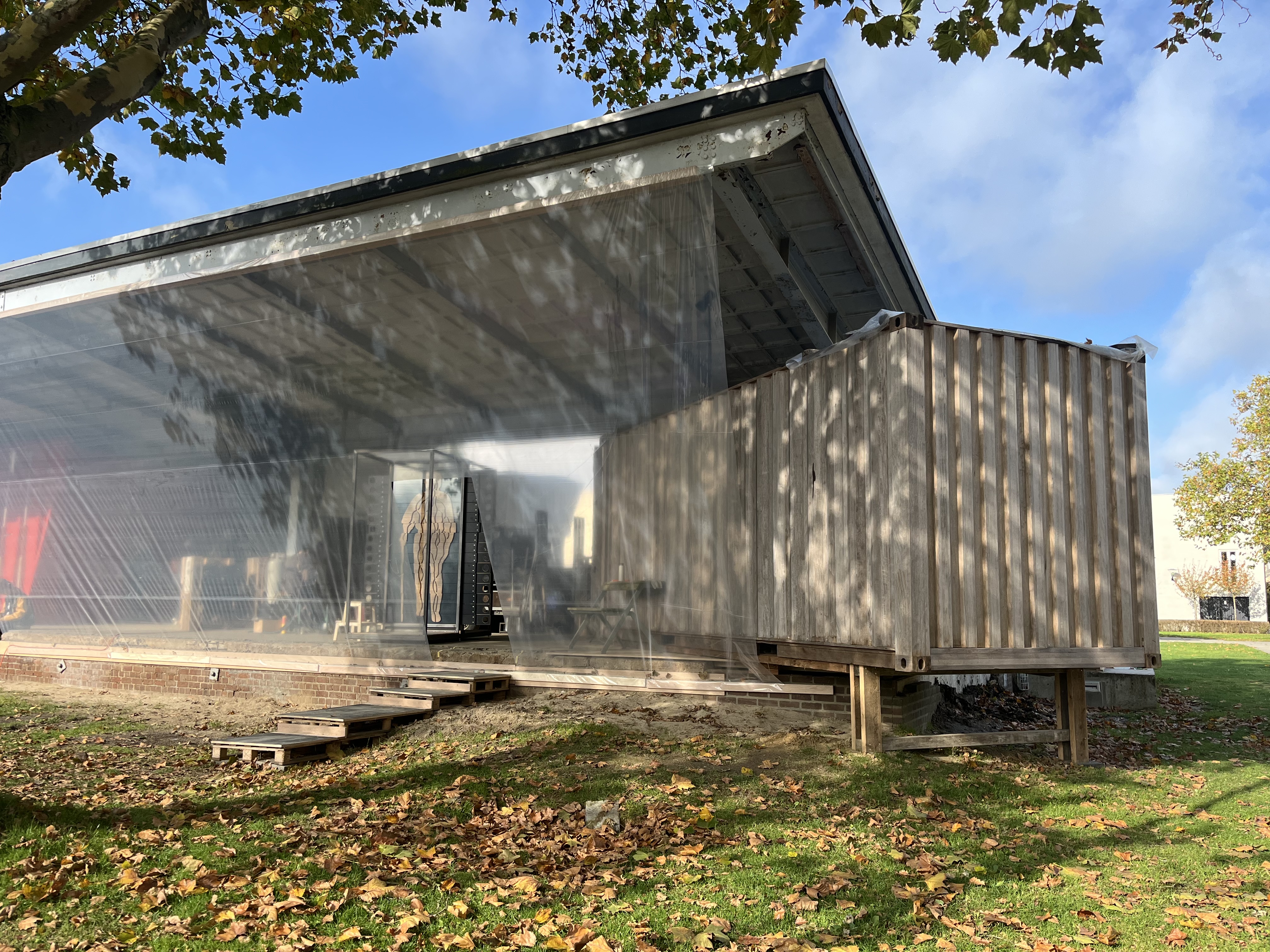 Since the last year our professorship has been part of an artistic research collaboration with Fontys Mens en Gezondheit, together with the historical college FNI of V&VN and the Pulse network. Called “Onderhuids” (“Subcutaneous”), this is a project where art, heritage, history, care and nursing work come together. This project comes together beautifully in an exhibition during the Dutch Design Week 2024, now in its last days (19-27 October). The former train platfom at designer Piet Hein Eek’s location forms a special “backdrop”where three artists explore the boundaries of nursing work in an inspiring way.