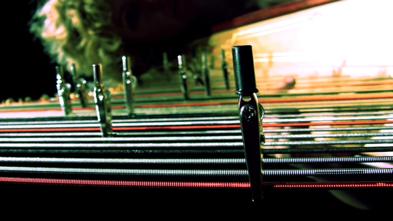 Living Room combines the live performance on the harp with the same performer on video. Oscillating between concert, film and installation, the playing and unpretentious actions of the live performer meet, merge and clash with the video part, filmed with a hand camera and edited to an audiovisual journey between documentary film and psychedelic movie.